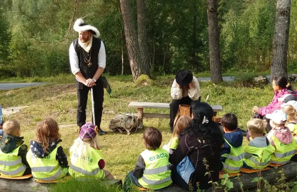 Gjennom dramatiseringer og dukketeater gjenfortelles historien om sølvfunnet og sølvverkstida. Barna får også være med på skattejakt. Aktiviteten foregår ute i skogen ved gruveinngangen i Saggrenda. Deretter går turen opp til aktivitetsplassen hvor ungene får delta i fyrsetting, sølvvasking og preging av mynt. Etter to aktive timer går de hjem med skatter i lomma, og forhåpentligvis en gryende interesse for lokalhistorien.