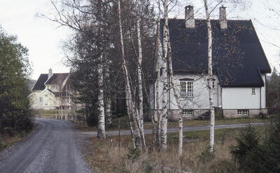 Funksjonærboliger ved Hakkelberg ved Vinorenveien, bygd av det tyskeide A/S Trollerud Sølvverk 1911–1912. Det nærmeste huset har brent ned etter at bildet ble tatt i 1992. - 2/18