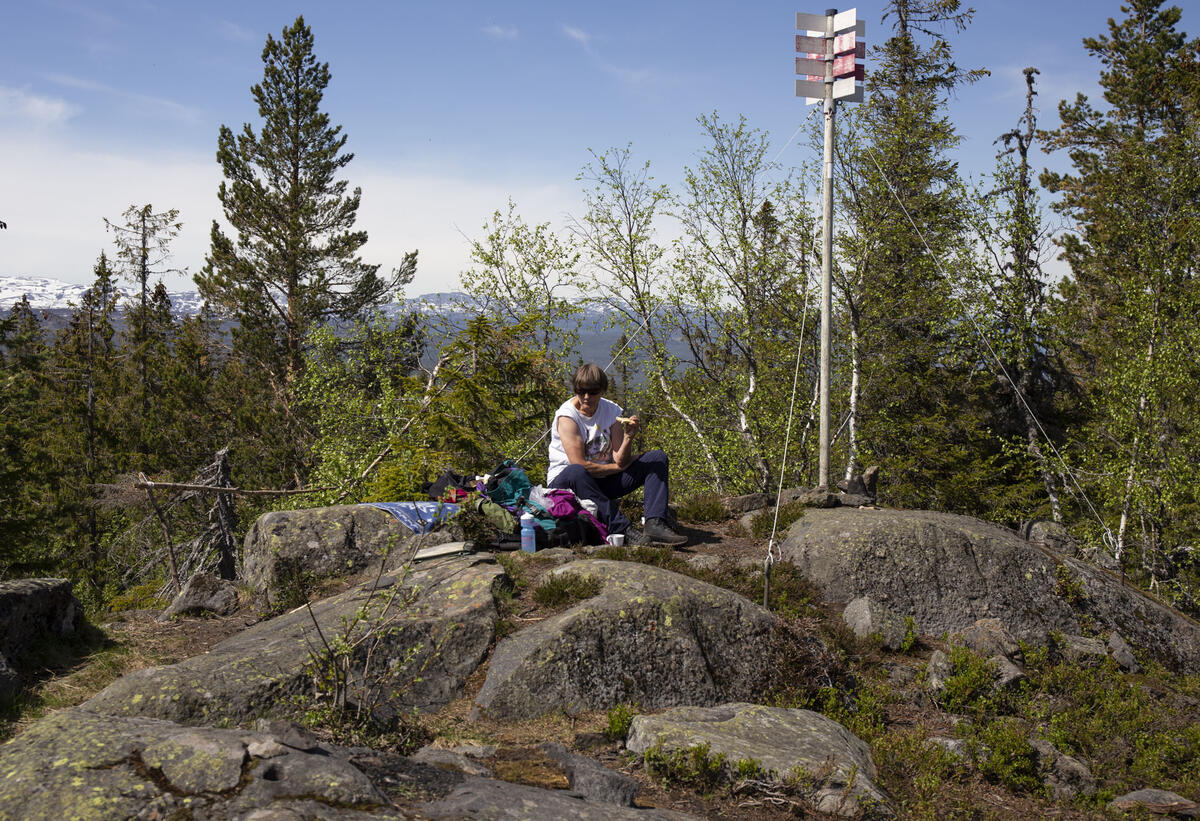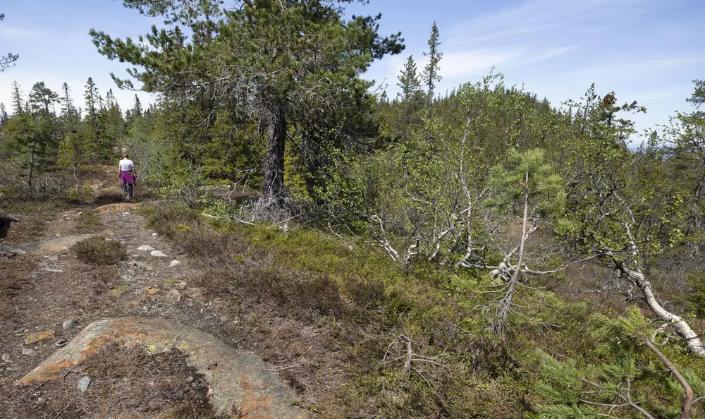Fra P ved rundkjøring går det sti til toppen ca. 40 minutter – stigning 216 m – via Christianus Sextus og Dronning Sophie Magdalene gruver. Derfra kan returen gjøres via sti ned på sørsiden til Sextusveien, ta t.h. forbi Norske Løve gruve til Sextus (noe rotete passering pga. vindfall).