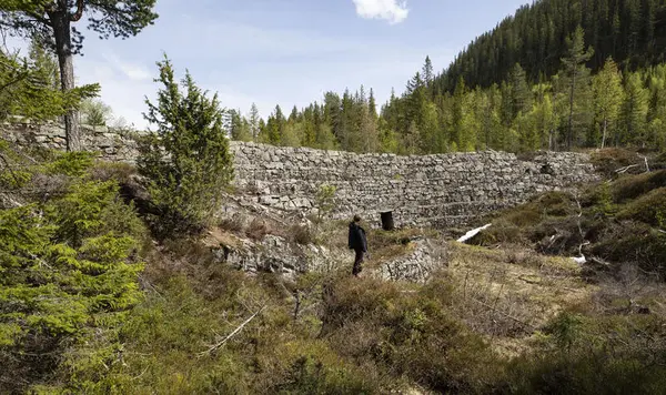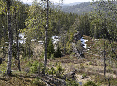 Norske Løve gruves berghald, utsikt vestover mot Blefjell. - 12/18