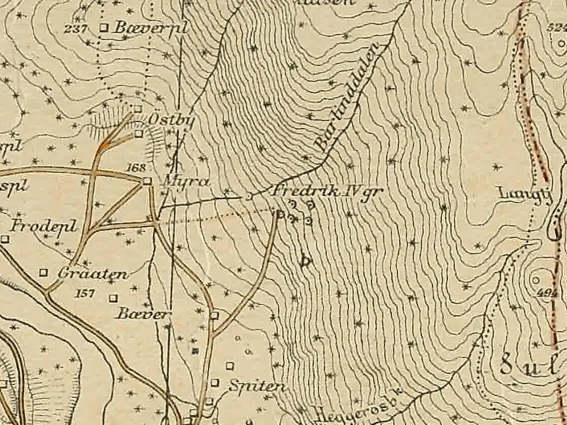 Lenge holdt Sølvverket seg til Knutefjell eller Gruveåsen og de forekomstene som fantes der. Først ut på 1700-tallet begynte de aktivt å skjerpe i andre områder. I 1720 ble en av de første forekomstene på østsida av Lågen funnet. Det var Gulbrand Iversen og hans to stesønner som fant forekomsten og de ble belønnet med 100 spesidaler for funnet. Gruva ble oppkalt etter daværende konge, Fredrik IV. I begynnelsen var gruva lovende med rik erts og i 1723 arbeidet over 50 personer der. Flere gruver og skjerp i området ble også påbegynt på 1720-tallet. I 1731 var det likevel slutt i første omgang. Sølvforekomsten hadde tapt seg og den største gruva var nå blitt så dyp at det var svært krevende å holde den tørr ved hjelp av håndpumpene som ble brukt. Nye forsøk ble gjort i første halvdel av 1740-tallet, men med likt resultat. Den dypeste gruva var da 65 lakter dyp, tilsvarende ca. 130 meter. Det var også drevet inn flere stoller.