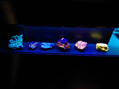Barn undersøker mineraler på Geolaben C. Berg/Norsk Bergverksmuseum