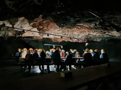 Vi oppfordrer alle barn (og voksne) til å kle seg ut! Med forbehold om hjelmpåbud i gruva. Kle deg varmt - det er 6 grader i gruva.