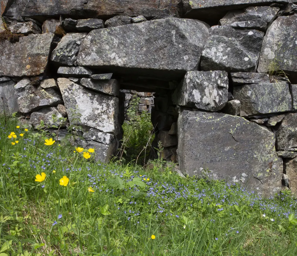 Engsoleie og forglemmegei foran inngangen til Kronprinsens kunsthjulstue.