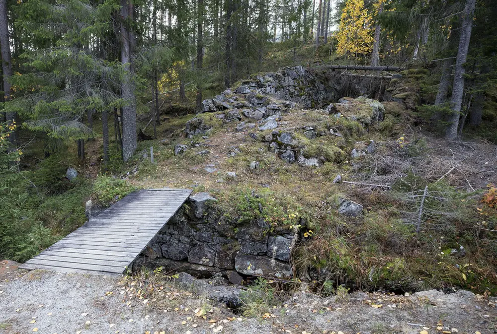 Den nederste av tre hjulstuer ved Hannibal pukkverk (3) var opprinnelig bygd i 1686 for å drive pumpene i Hannibal gruve, som erstatning for ei hjulstue lenger ned. Pukkverket var i drift til 1830-årene.