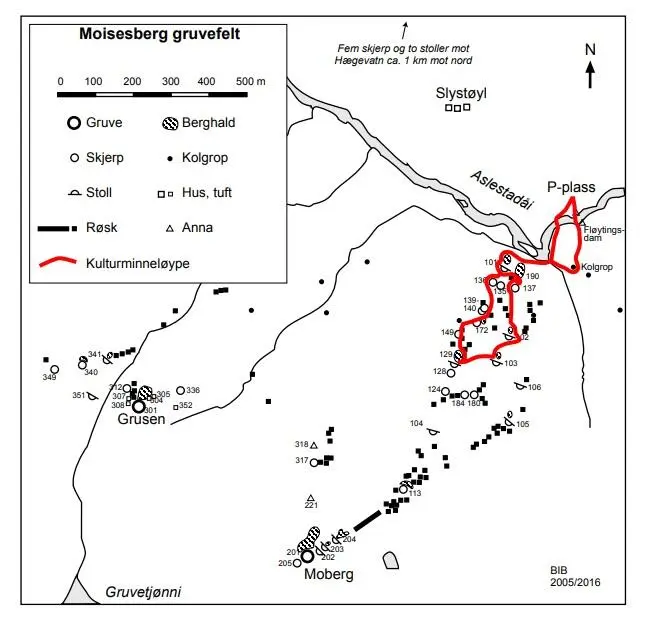 Moisesberg – kulturminneløype (brosjyre Fyresdal kommune, Norsk Bergverksmuseum og Telemark fylkeskommune 2016)