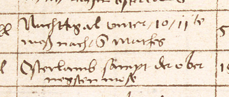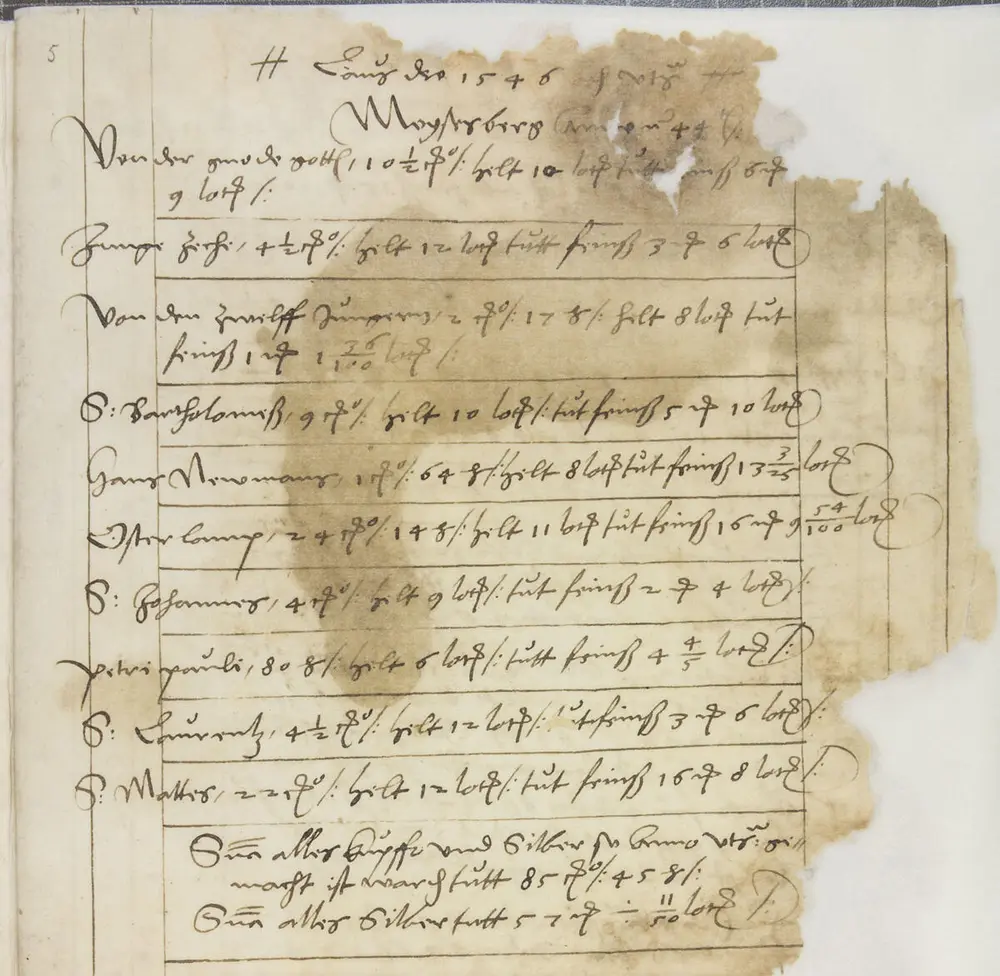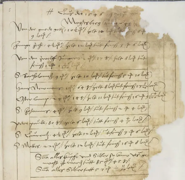 Påskelammet (Osterlamm) gruve er nevnt i en regnskapsoversikt for 3. kvartal 1541, den første skjerpesommeren i Moisesberg. Her ført etter Nattergalen (Nachtigall): «Osterlamb sampt der ober negsten mass». (Riksarkivet) - 2/2