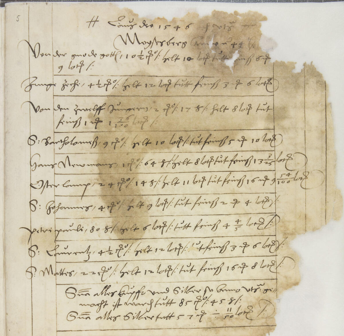 Produksjonsoversikt for Moisesberg 1544, der «Osterlamp» figurerer omtrent midt på lista. (Riksarkivet, foto: B.I.B.) B.I Berg/Norsk Bergverksmuseum