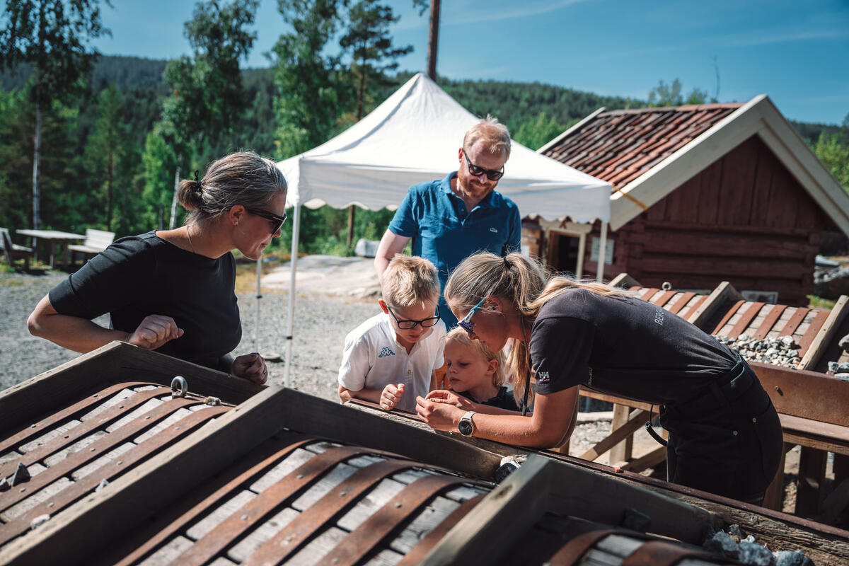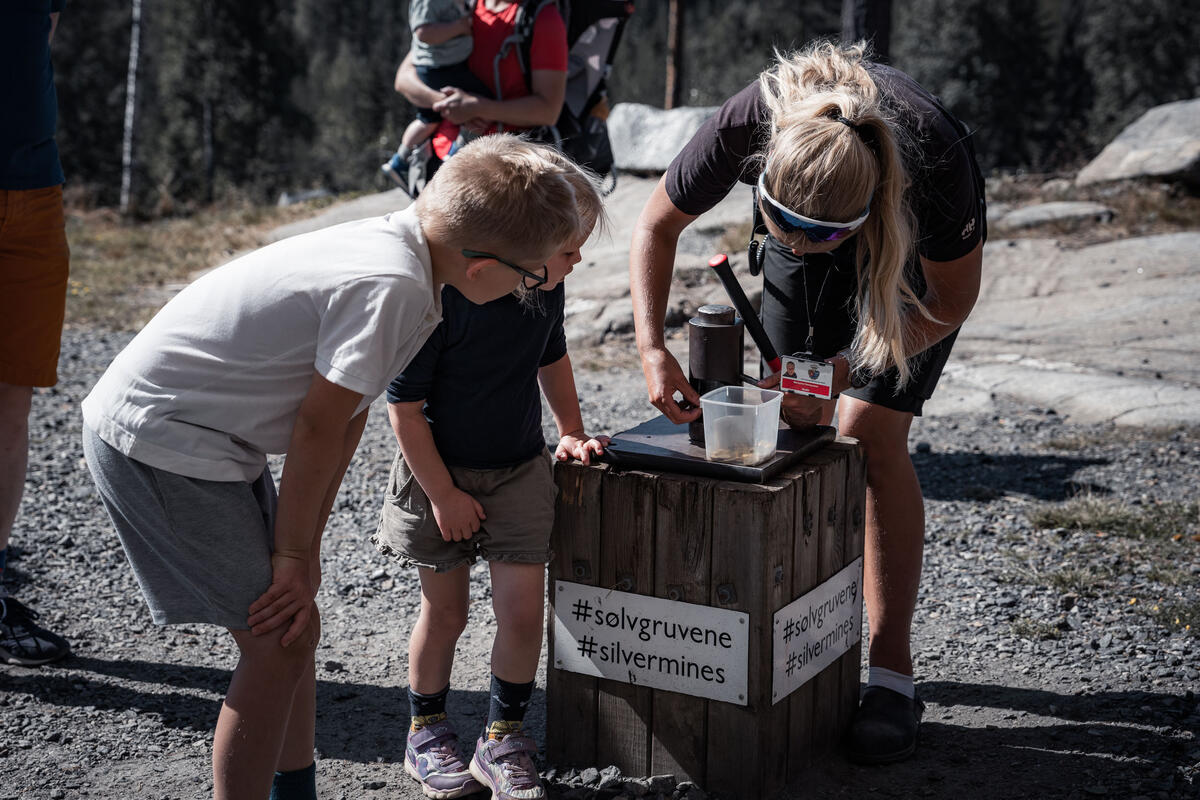 På aktivitetsplassen rett utenfor Sølvgruvene kan du bryne deg på aktiviteter som fyrsetting, myntpreging, mineraljakt og du kan vaske ut ditt eget sølv.