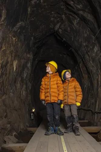 - Kle dere godt for temperaturen er ca. +6 grader. Togturen tar 15 minutter og innebærer en del støy. Bruk derfor utdelte ørepropper. Omvisningen til fots rundt i gruva tar ca. 60 min og er 800 meter lang. Turen innebærer trappetrinn tilsvarende fem etasjer (16 meter).