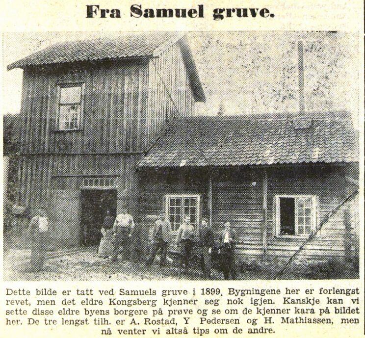 Samuel gruve ligger der Korsveien krysser alpinløypa Turisten. Herfra er det fin utsikt mot Kongsberg. Fra byen er de store berghaldene – tipphaugene – godt synlige. Norsk Bergverksmuseum/ B.I. Berg