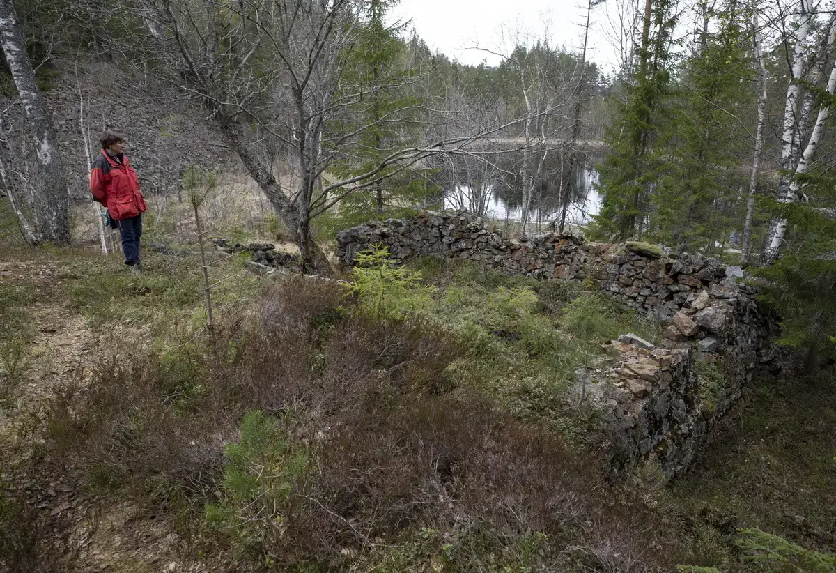 Muren for hestegjøpelen ved Nr. 8 er restaurert på dugnad. B.I. Berg/Norsk Bergverksmuseum