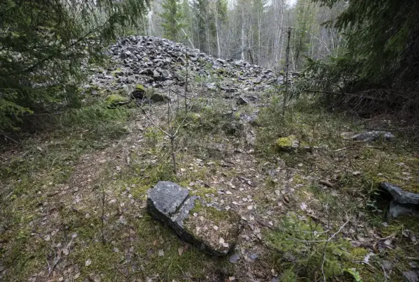 Tuft etter smie ved Smietjenn. Berghalder fra gruvene t.v.
