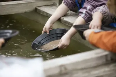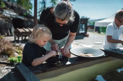 Kl. 13: Aktiviteter på Aktivitetsplassen. Sølvvasking, myntpreging, mineralbanking, kle deg ut som en gruvearbeider, tegn ditt eget monogram.