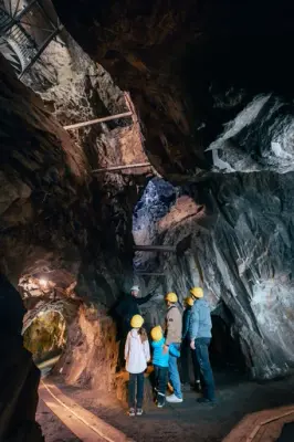 Hopp på gruvetoget som tar deg 342 meter under overflaten og 2300 meter inn i fjellet. Sammen med våre erfarne guider vil barn og voksne oppleve mannskapsheiser, malmheiser, maskiner og store gruverom. Læring blir til moro i spennende omgivelser! Kanskje finner vi til og med en liten skatt?